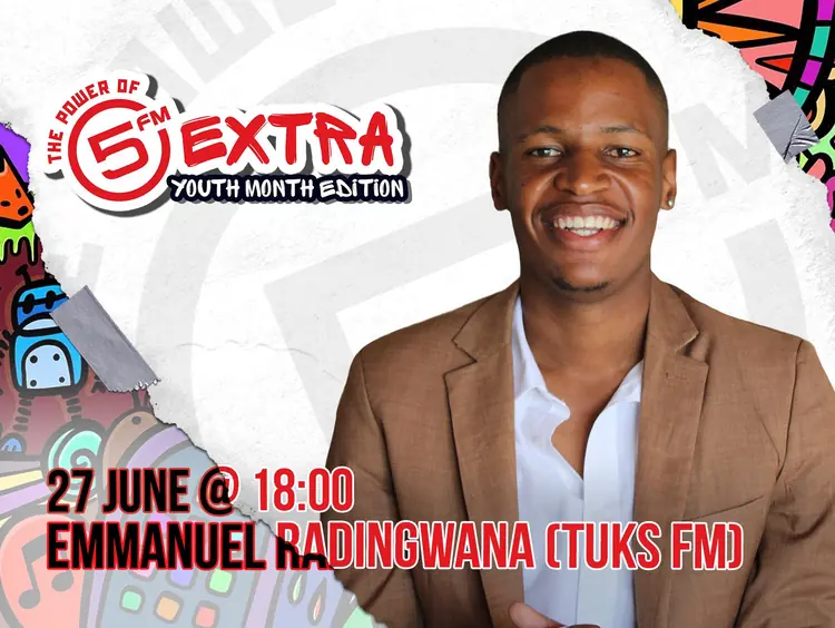 Tlotliso Kama from Madibaz Radio on 5 Extra! Don't just watch from the sidelines, be part of the action on 5 Extra Youth Month Edition!